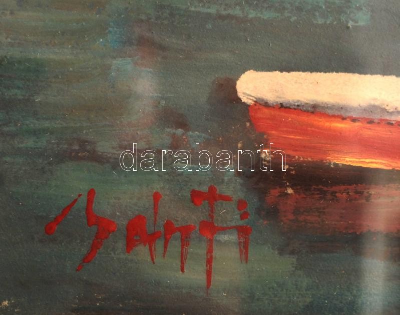 Bánfi József (1936-): Vitorlások a Balatonon. Olaj, karton, jelzett, ü...