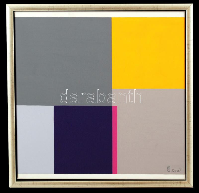 Dévényi János (1956- ): Sárga négyzet, akril, vászon, jelzett, fa kere...