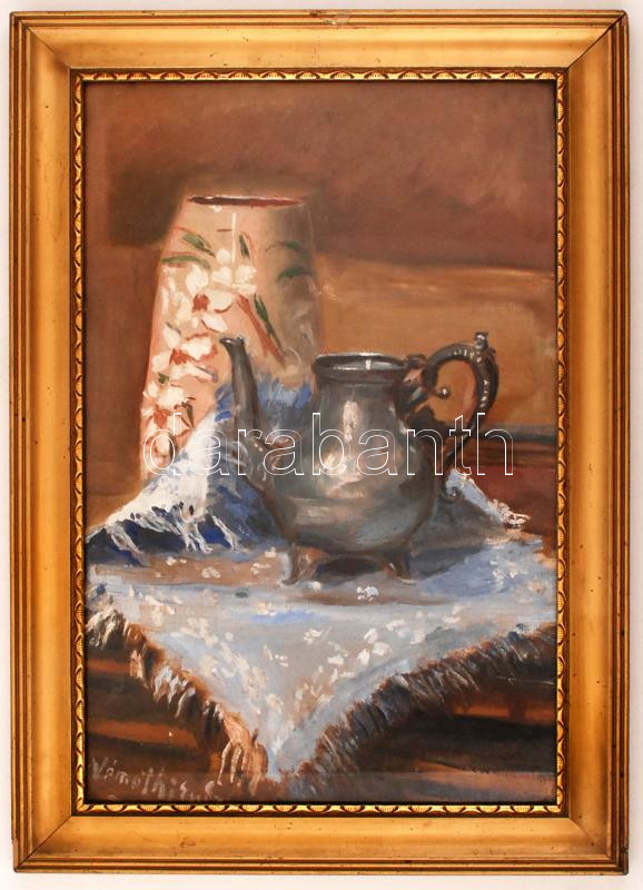 Némethi András Endre (1877-?): Asztali csendélet. Olaj, karton, jelzet...
