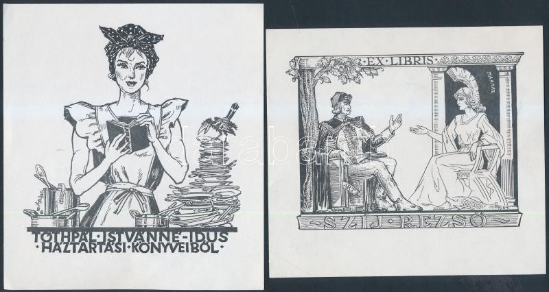 Petry Béla (1902-1996): 2 db ex libris,klisé, papír, jelzés nélkül, 12...
