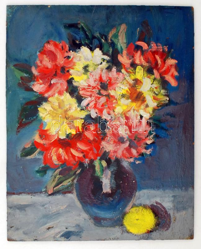 Schéner Mihály (1923-2009): Virágcsendélet. Olaj, farost, jelzés nélkül, 50×40 cm