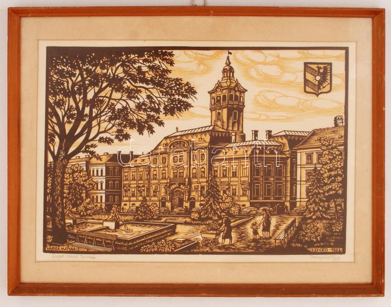 Varga Mátyás (1910-2002)Szeged, városháza. Linómetszet, jelzett. Keret...