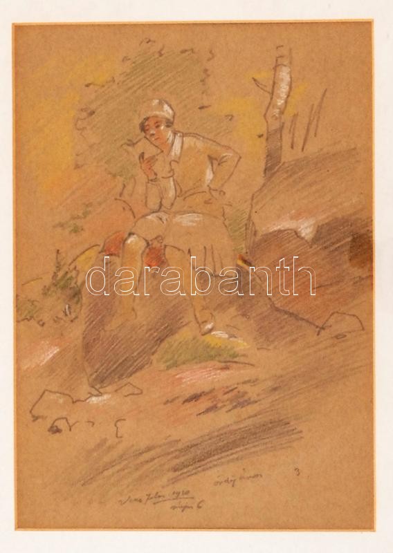 Veress Zoltán (1868-1935): Vázlat rajzok (6db). Ceruza, papír, egyik j...