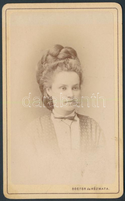 cca 1880 Hölgy műtermi portréja, keményhátú fotó Doctor és Kozmata műterméből, 10x6 cm