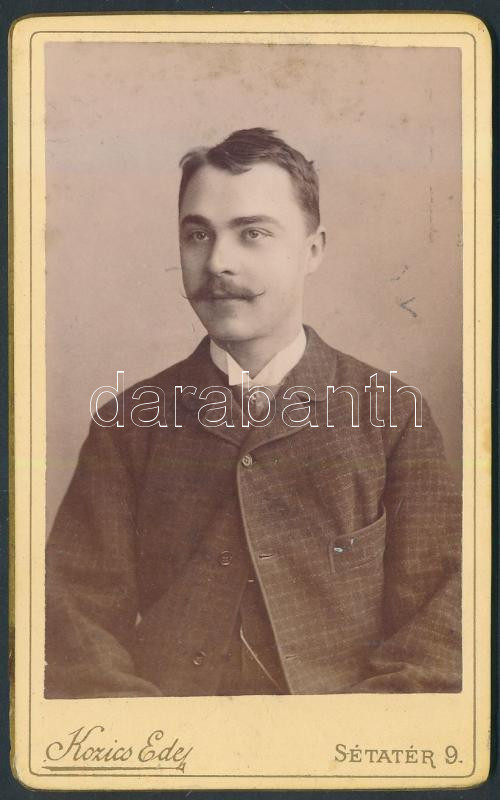 cca 1900 Fiatal férfi műtermi portréja, keményhátú fotó Kozics Ede poz...