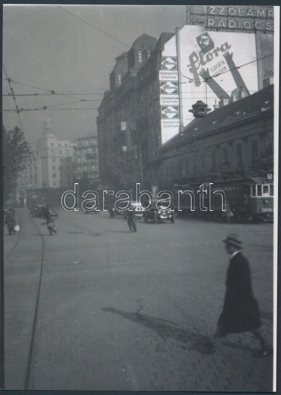 cca 1930 Budapest, Károly körút, 52-es villamos járat, korabeli negatí...