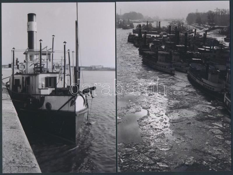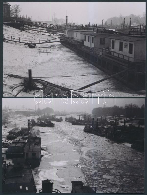 cca 1935 Budapest, Újpest, Téli kikötő, Danassy Károly (1904-1996) hagyatékában őrzött 6 db negatívról készült modern nagyítások, 15x10 cm