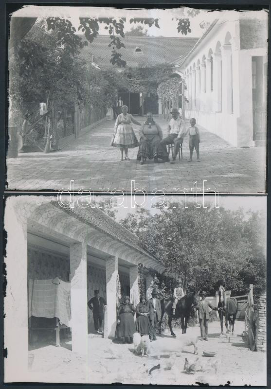 Description: cca 1935 Falusi udvarházak, Lőcsei Árpád vándorfényképész felvételei Bács-Kiskun megye déli falvaiban, a hagyatékában őrzött 7 db üveglemez negatívról készült modern nagyítások, 13x18 cm