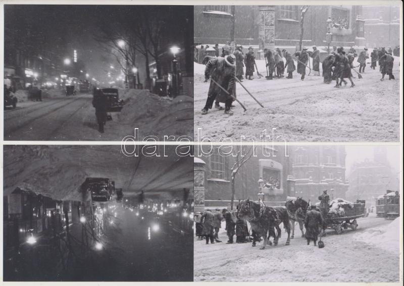 cca 1948 Budapest sűrű hóesésben, 4 db korabeli negatívról készült modern nagyítás, 10x15 cm
