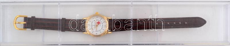 André Philippe Vöröskeresztes quartz óra tokkal, bőr szíjjal