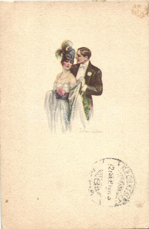 Italian art postcard, dressed up couple, s: Bompard (fa)