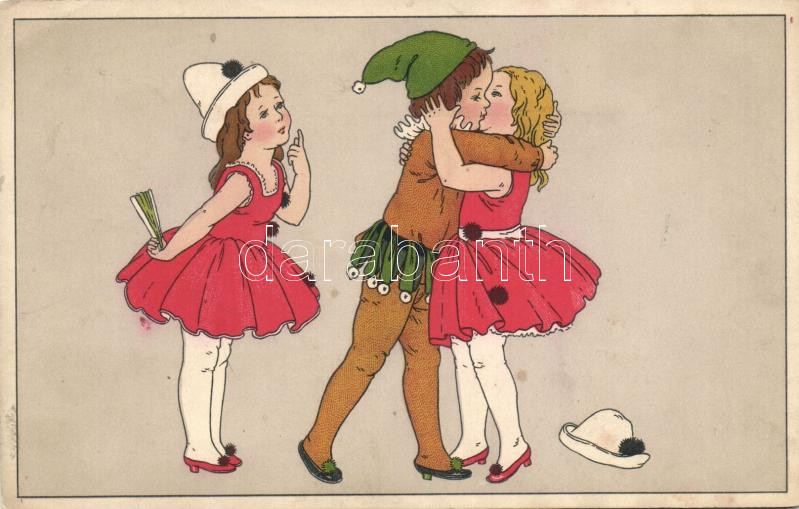 Jester and Pierrots, Meissner & Buch, Künstler Postkarten serie 2197, unsigned Fritz Baumgarten, litho (ázott / wet damage)
