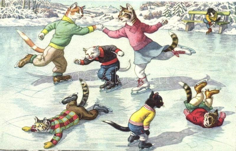 Ice skating cats, Max Künzli No. 4773.