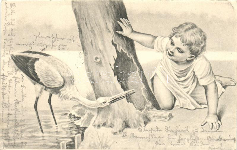Child, stork, E.S.W. Serie 109. (EK)