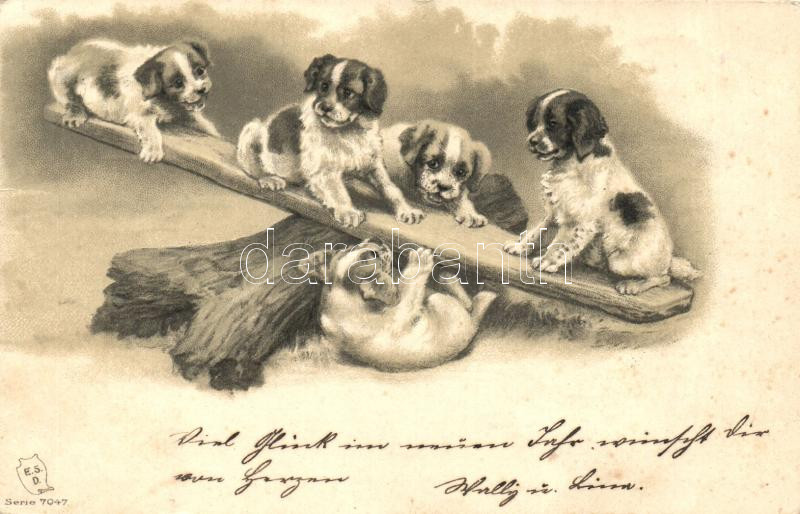 Dogs, E.S.D. Serie 7047. Emb. litho (EK)
