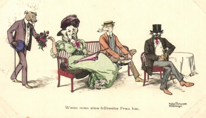 Wenn man eine hübsehe Frau hat / Dog party, M. Munk Vienne Nr. 381. s: Käthe Olshausen-Schönberger
