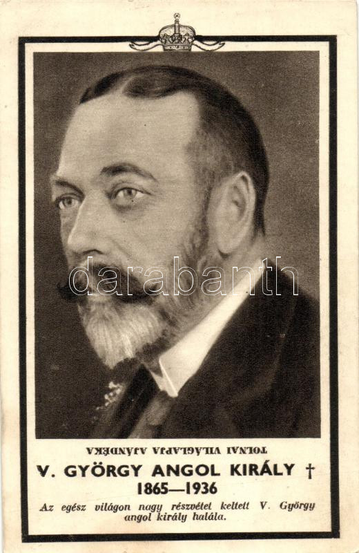 V. György angol király, gyászlap; Tolnai világlapja emléklapja / George V, obituary card