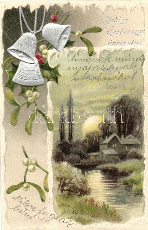 Christmas, landscape, bell, silver decoration Emb. litho, Erika Nr. 31...