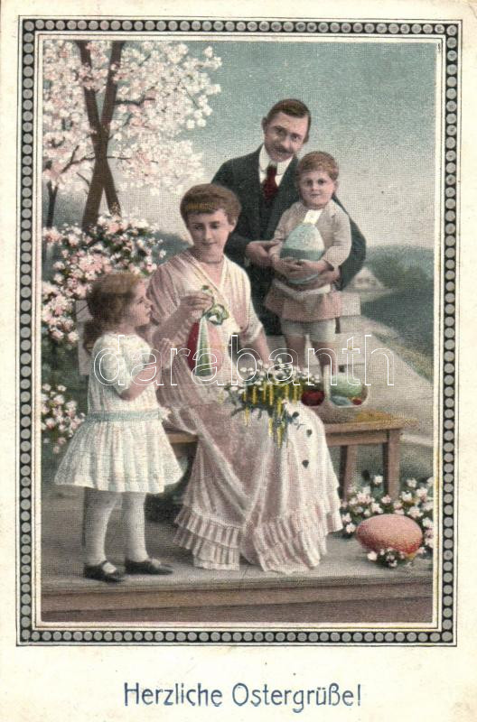 'Herzliche Ostergrüsse!' / Easter, family, egg (Rb)