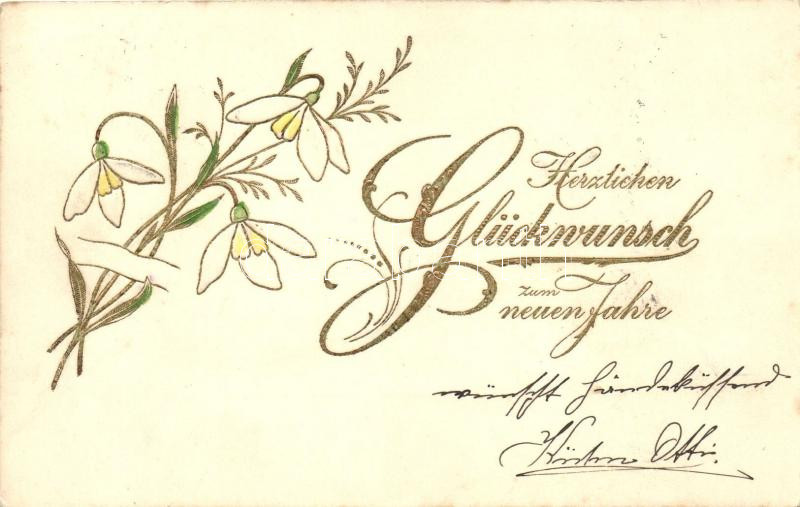 Herzlichen Glückwunsch zum neuen Jahre / New Year, Emb., golden decoration