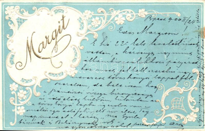 'Margit' névnapi üdvözlőlap / Margit Name Day greeting card Emb. (EK)