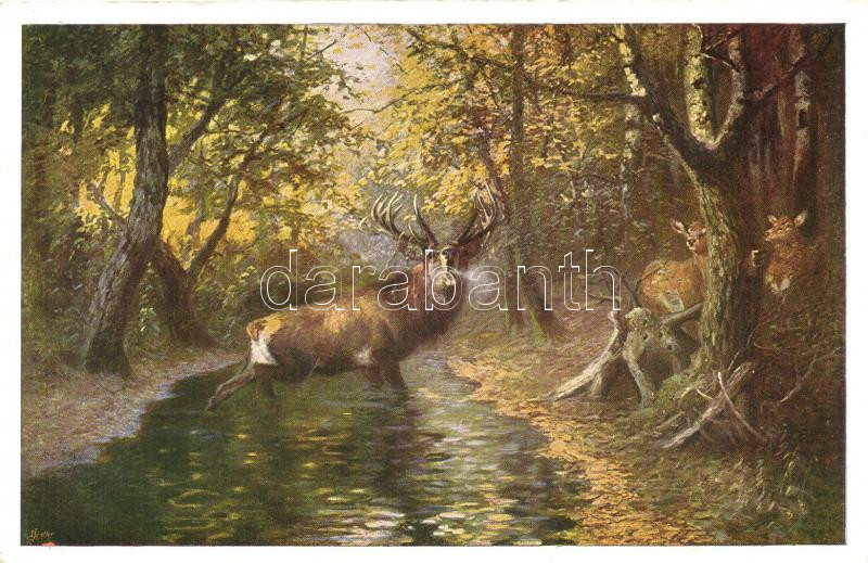 Hunting postcard, deer, B.K.W.I. 522-5. (EK)