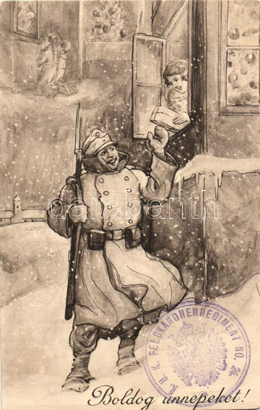 'Boldog ünnepeket', K.u.K. katona karácsonyi üdvözlőlapon / christmas greeting card with Austrian-Hungarian soldier (Rb)