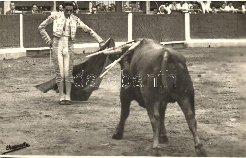 Showing the cloth to the running bull, bullfight, Chapresto Fotografica