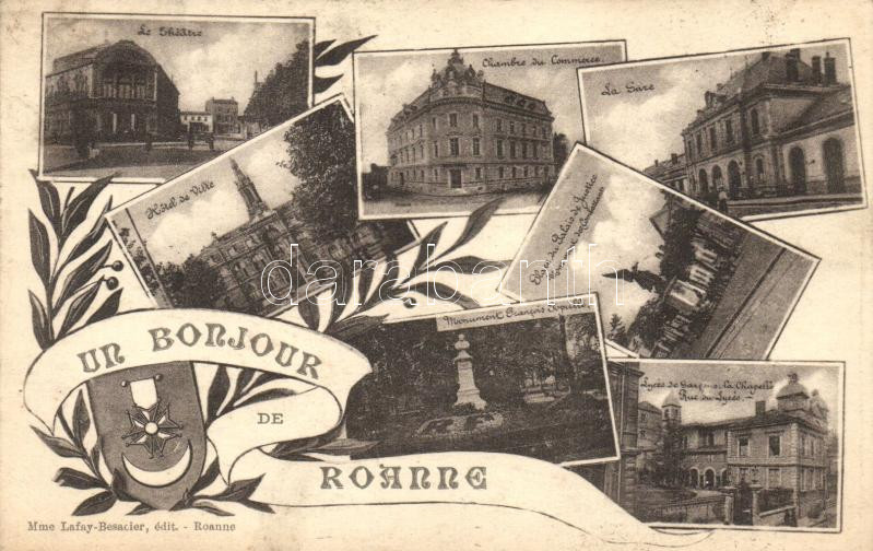 Roanne, railway station, theatre, town hall, chamber of commerce, coat of arms, floral (EK)