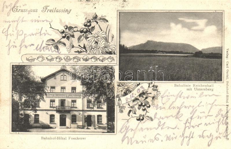Freilassing, Bahnhof-Hotel Foeckerer, Bahnlinie Reichenhall / railway ...
