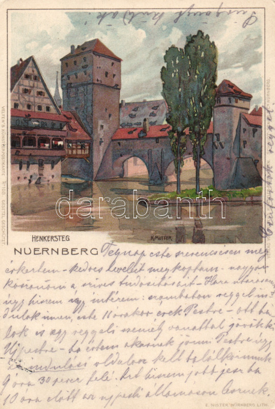 Nürnberg, Henkersteg; Velten's Künstlerpostkarte No. 108. litho s: K. Mutter (Rb)