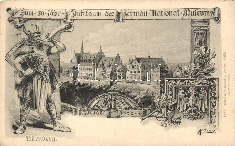 Nürnberg, Zum 50 Jähr-Jubiläum des German National Museums / memorial card for the 50th anniversary of the German national museums s: K. Linn (EK)