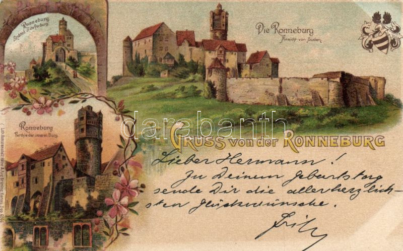 Ronneburg, castle, floral, litho