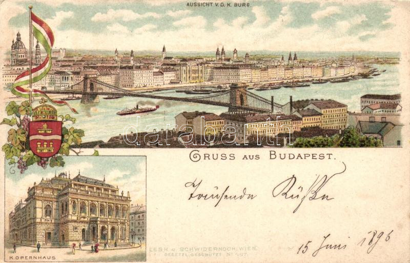 1896 Budapest, Operaház, címer, zászló, litho (EK)