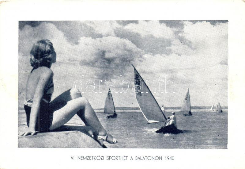 1940 Balaton, VI. Nemzetközi Sporthét, vitorlások, 2 db 'VI. Nemz...