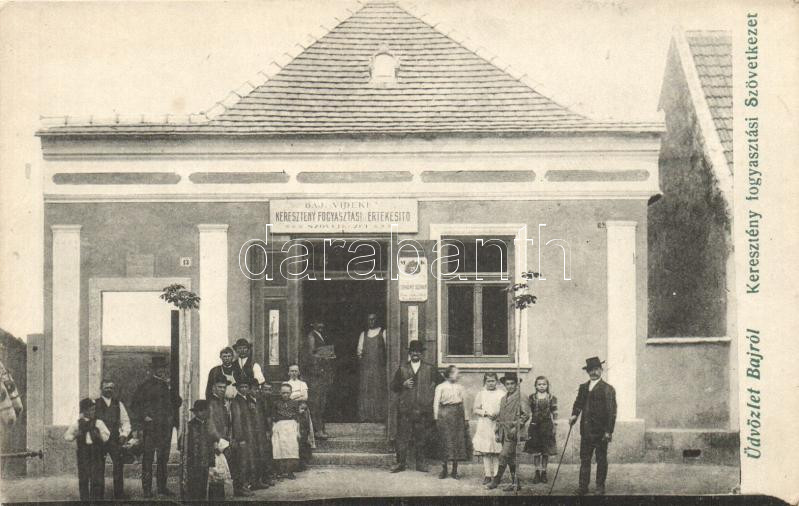 Baj, Keresztény Fogyasztási Értékesítő Szövetkezet épülete, kiadja Lindenberg Adolf