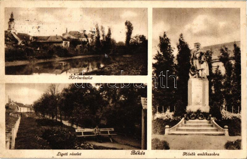 Békés, Kőrösrészlet, Ligeti részlet, Hősök emlékszobra, kiadja Vitéz S...
