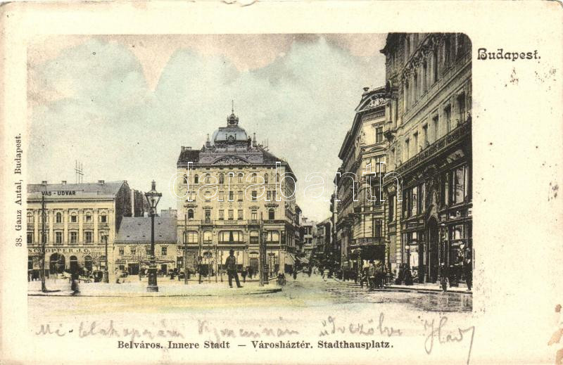 Budapest V. Városház tér, Schopper J.G. üzlete, Blaschek Conrad üzlete, 'Vas-udvar' (EK)