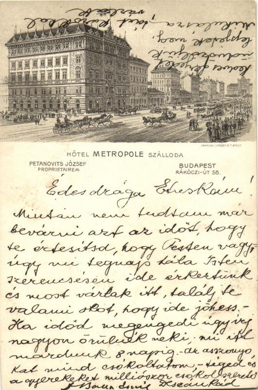 Budapest VII. Hotel Metropole szálloda, Petanovits József Proprietaire...