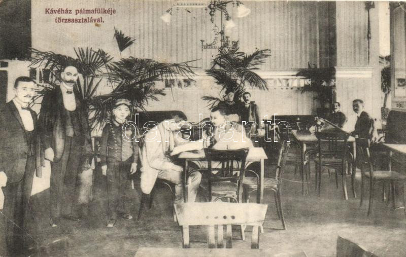 Budapest XI. Vass A. Lajos Műegyetem kávéháza, Kávéház pálmafülekéje törzsasztalával; Gellért tér 3. (EV)