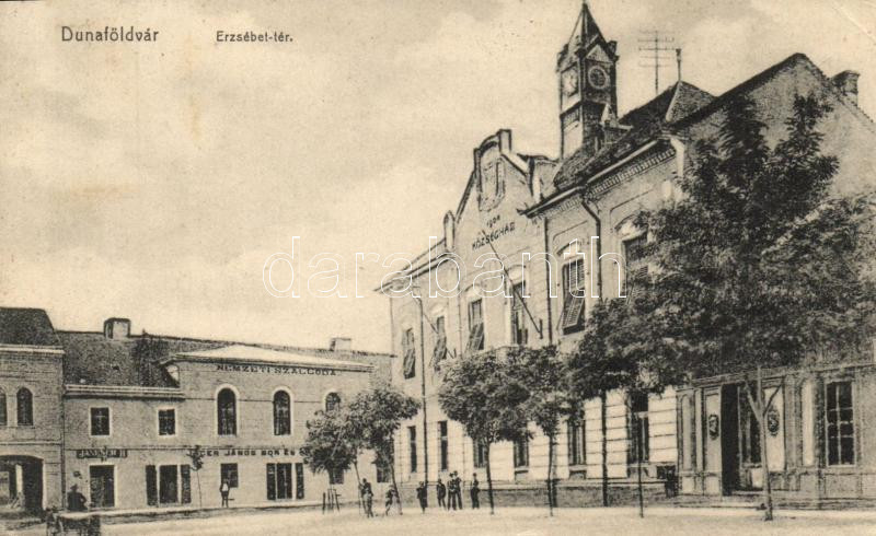 Dunaföldvár, Erzsébet tér, Községház, Nemzeti szálloda, Jáger János Bo...