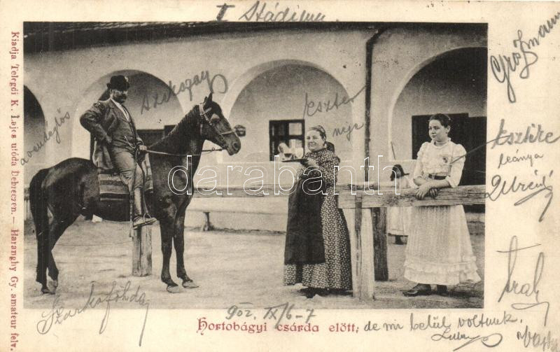 Hortobágy, csárda előtt, folklór; kiadja Telegdy K. Lajos utóda, Haranghy Gy. amateur felvétele