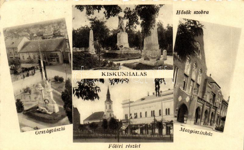 Kiskunhalas, Országzászló, Hősök szobra, Mozgószínház, Fő tér, Halasi ...