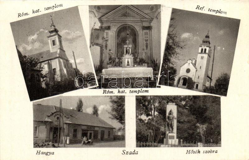 Szada, Hangya üzlet, Hősök szobra, Római katolikus templom belső, Református templom