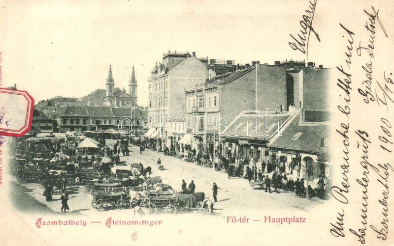 Szombathely, Fő tér, piac, Bútor üzlet és Deutsch Miksa üzlete (vágott...