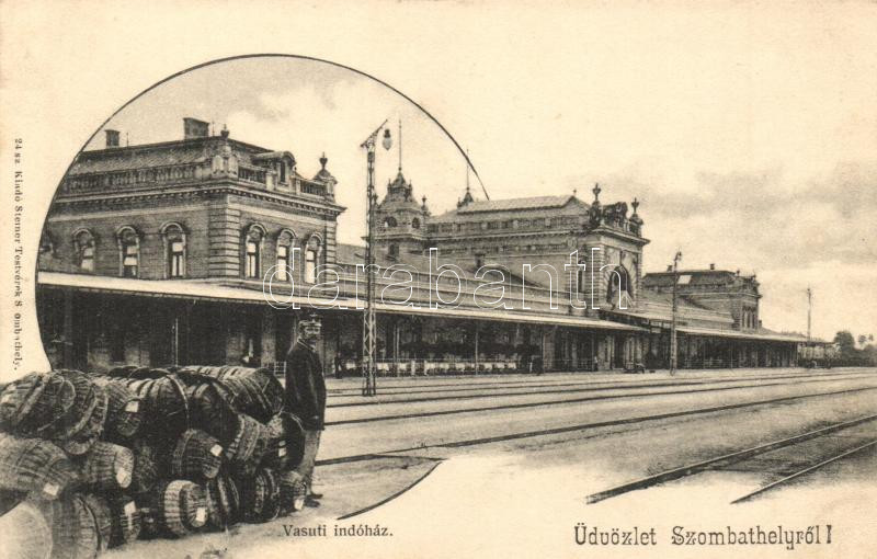 Szombathely, Vasúti indóház, vasútállomás, kalauz, kiadja Steiner Test...