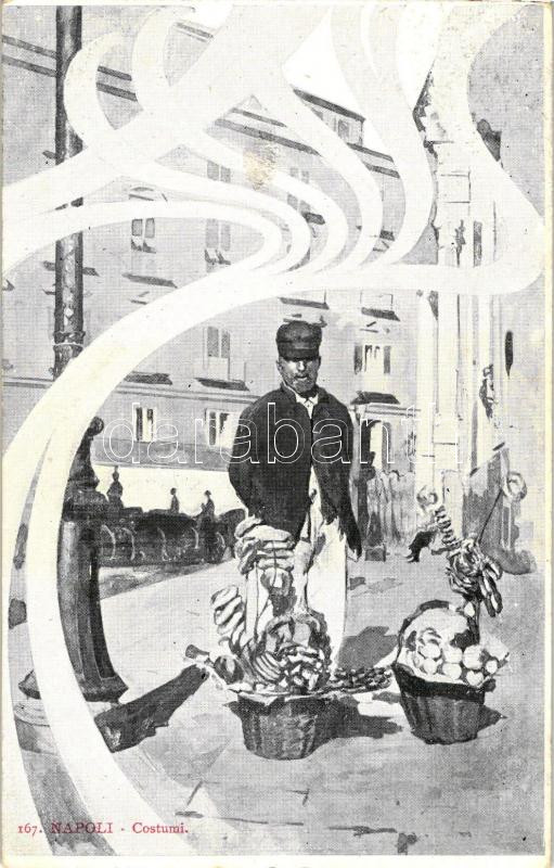 Naples, Napoli; Costumi / merchant, Art Nouveau (gluemark)