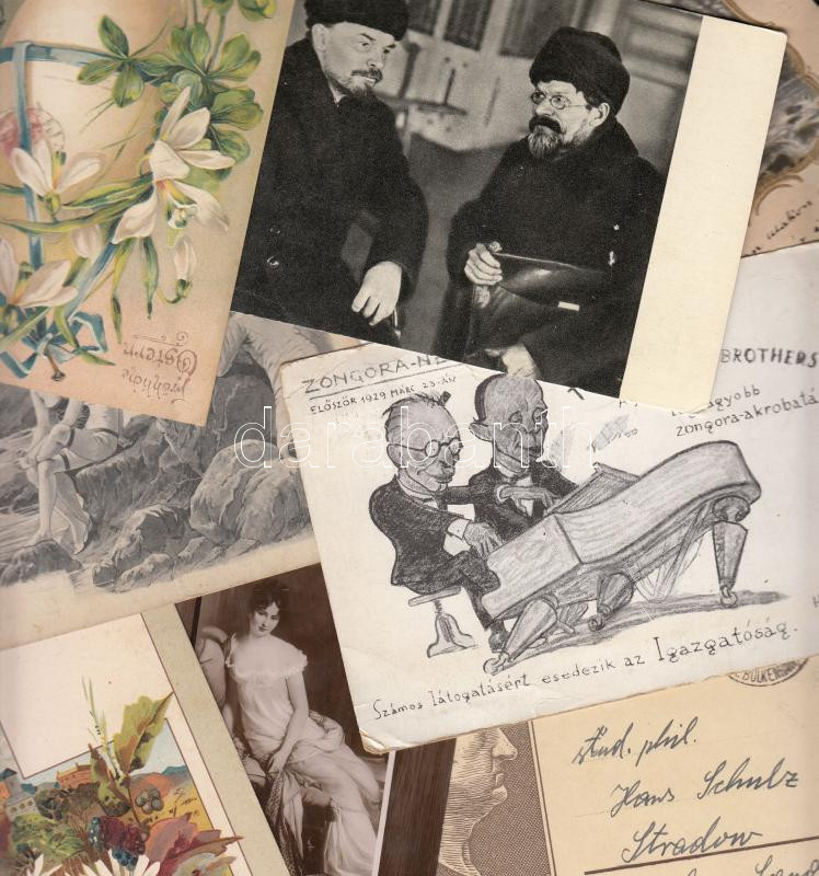 11 db főleg RÉGI motívumlap, vegyes minőség; művész, üdvözlő, zenész /...