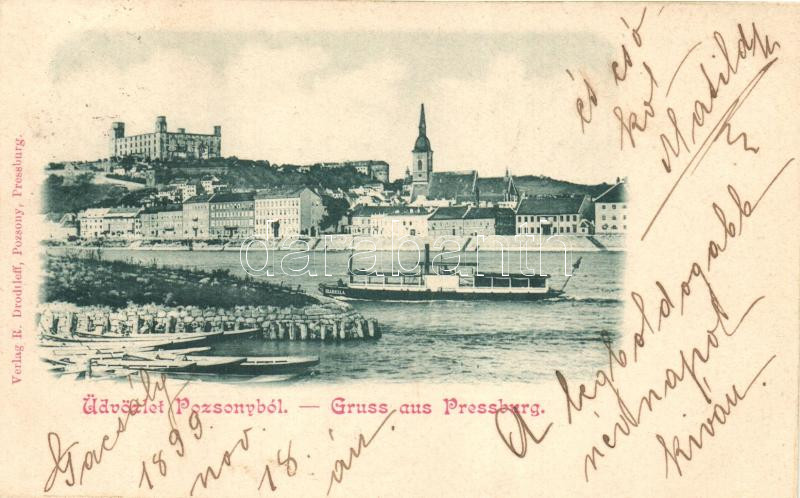 1899 Pozsony, Pressburg; Izabella gőzhajó / view with steamer