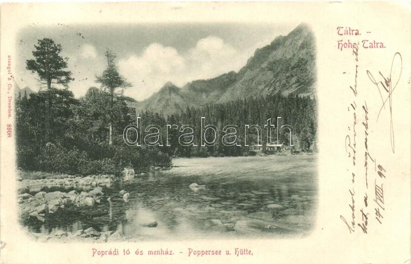 1899 Tátra, Magas Tátra, Tatra; Poprádi tó és a menház / lake and the rest house (EK)
